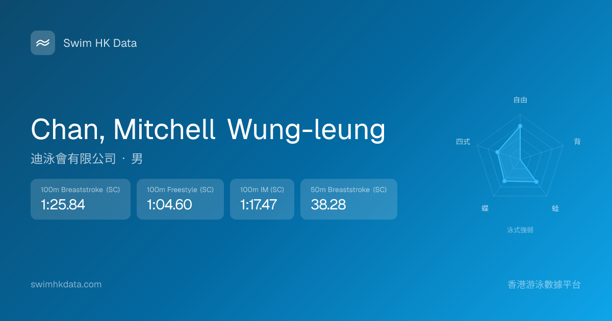 此圖表根據你所有比賽成績計算,顯示你在各泳式的相對強弱,僅供參考。繼續努力,每一次練習都會讓你更快更強!💪