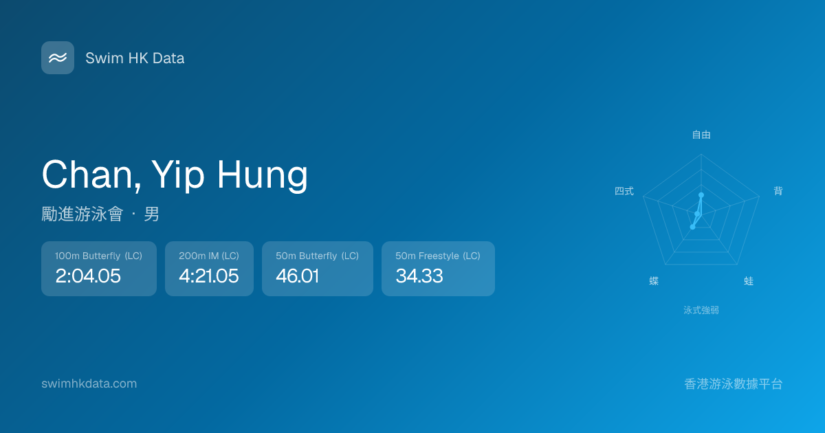 此圖表根據你所有比賽成績計算,顯示你在各泳式的相對強弱,僅供參考。繼續努力,每一次練習都會讓你更快更強!💪
