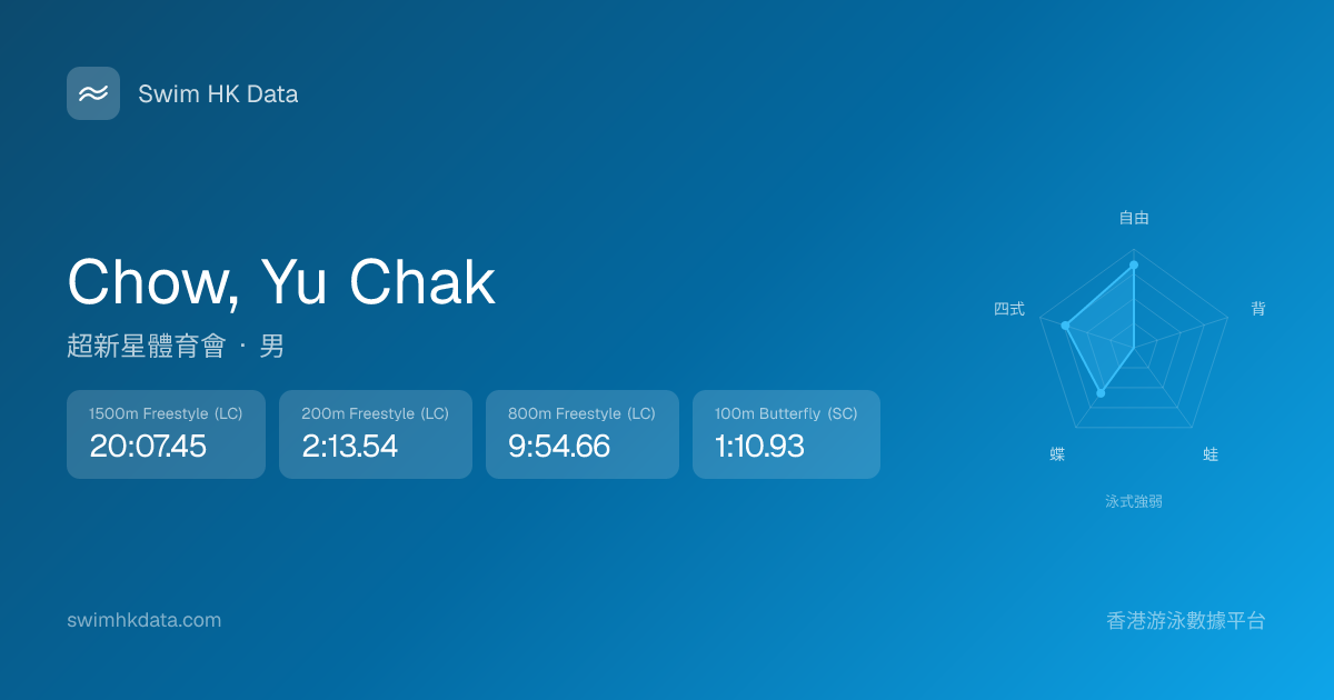 此圖表根據你所有比賽成績計算,顯示你在各泳式的相對強弱,僅供參考。繼續努力,每一次練習都會讓你更快更強!💪