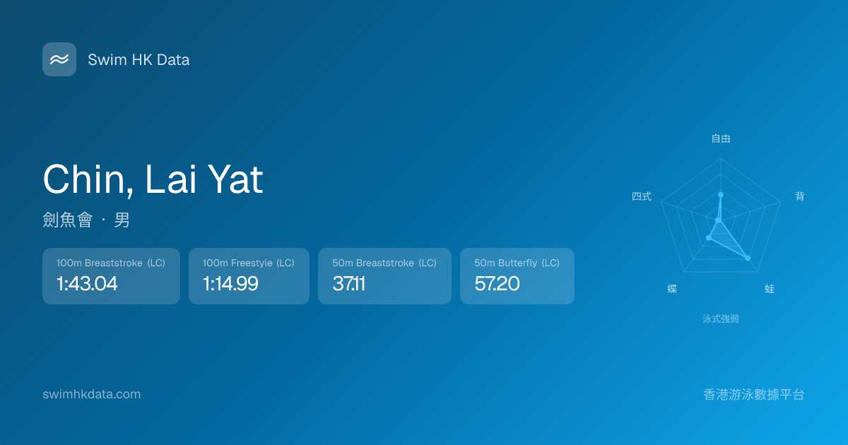 此圖表根據你所有比賽成績計算,顯示你在各泳式的相對強弱,僅供參考。繼續努力,每一次練習都會讓你更快更強!💪