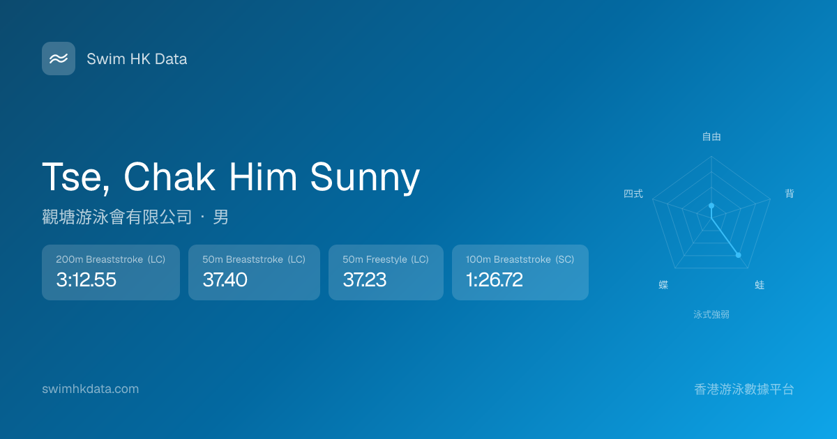 此圖表根據你所有比賽成績計算,顯示你在各泳式的相對強弱,僅供參考。繼續努力,每一次練習都會讓你更快更強!💪