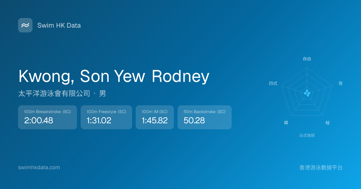 此圖表根據你所有比賽成績計算,顯示你在各泳式的相對強弱,僅供參考。繼續努力,每一次練習都會讓你更快更強!💪