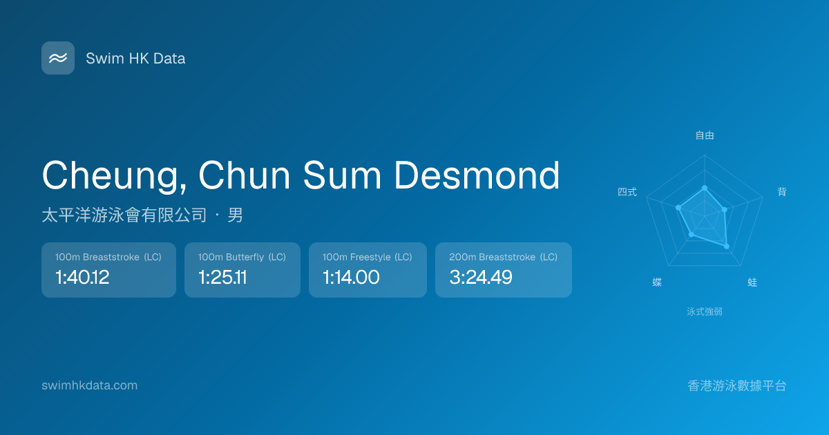 此圖表根據你所有比賽成績計算,顯示你在各泳式的相對強弱,僅供參考。繼續努力,每一次練習都會讓你更快更強!💪