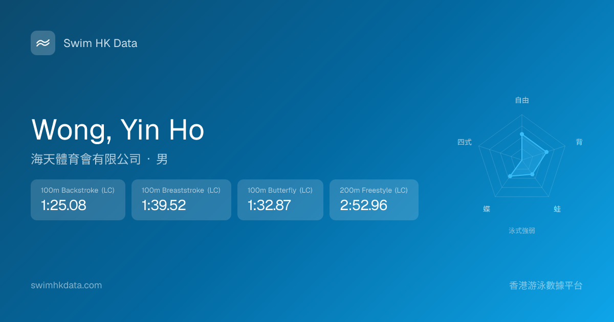此圖表根據你所有比賽成績計算,顯示你在各泳式的相對強弱,僅供參考。繼續努力,每一次練習都會讓你更快更強!💪