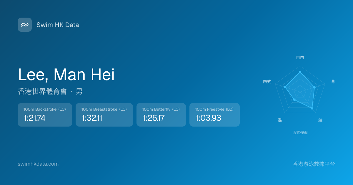 此圖表根據你所有比賽成績計算,顯示你在各泳式的相對強弱,僅供參考。繼續努力,每一次練習都會讓你更快更強!💪