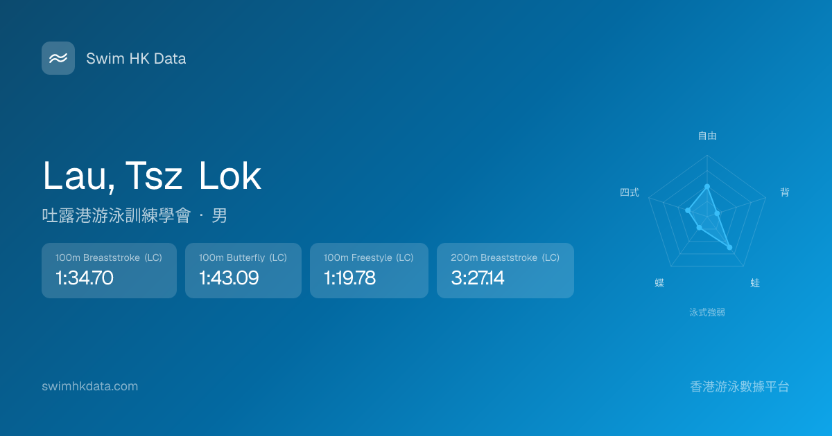 此圖表根據你所有比賽成績計算,顯示你在各泳式的相對強弱,僅供參考。繼續努力,每一次練習都會讓你更快更強!💪