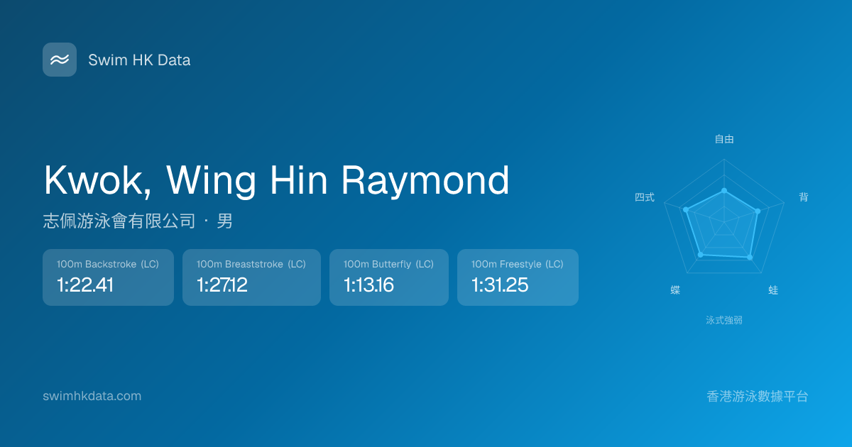此圖表根據你所有比賽成績計算,顯示你在各泳式的相對強弱,僅供參考。繼續努力,每一次練習都會讓你更快更強!💪