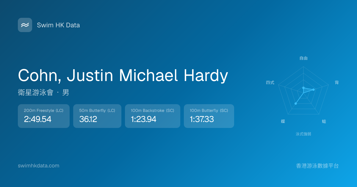 此圖表根據你所有比賽成績計算,顯示你在各泳式的相對強弱,僅供參考。繼續努力,每一次練習都會讓你更快更強!💪