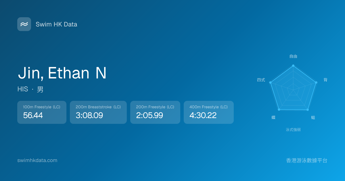 此圖表根據你所有比賽成績計算,顯示你在各泳式的相對強弱,僅供參考。繼續努力,每一次練習都會讓你更快更強!💪