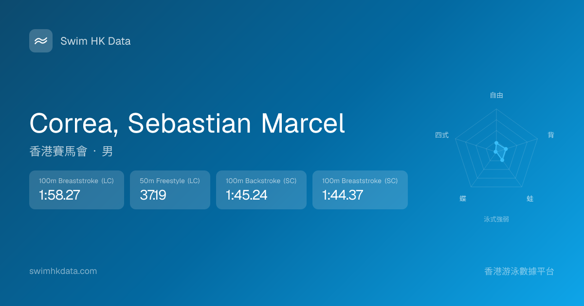 此圖表根據你所有比賽成績計算,顯示你在各泳式的相對強弱,僅供參考。繼續努力,每一次練習都會讓你更快更強!💪