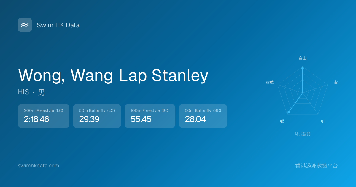 此圖表根據你所有比賽成績計算,顯示你在各泳式的相對強弱,僅供參考。繼續努力,每一次練習都會讓你更快更強!💪