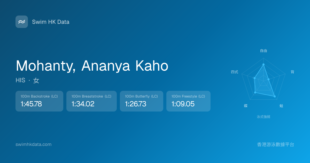 此圖表根據你所有比賽成績計算,顯示你在各泳式的相對強弱,僅供參考。繼續努力,每一次練習都會讓你更快更強!💪
