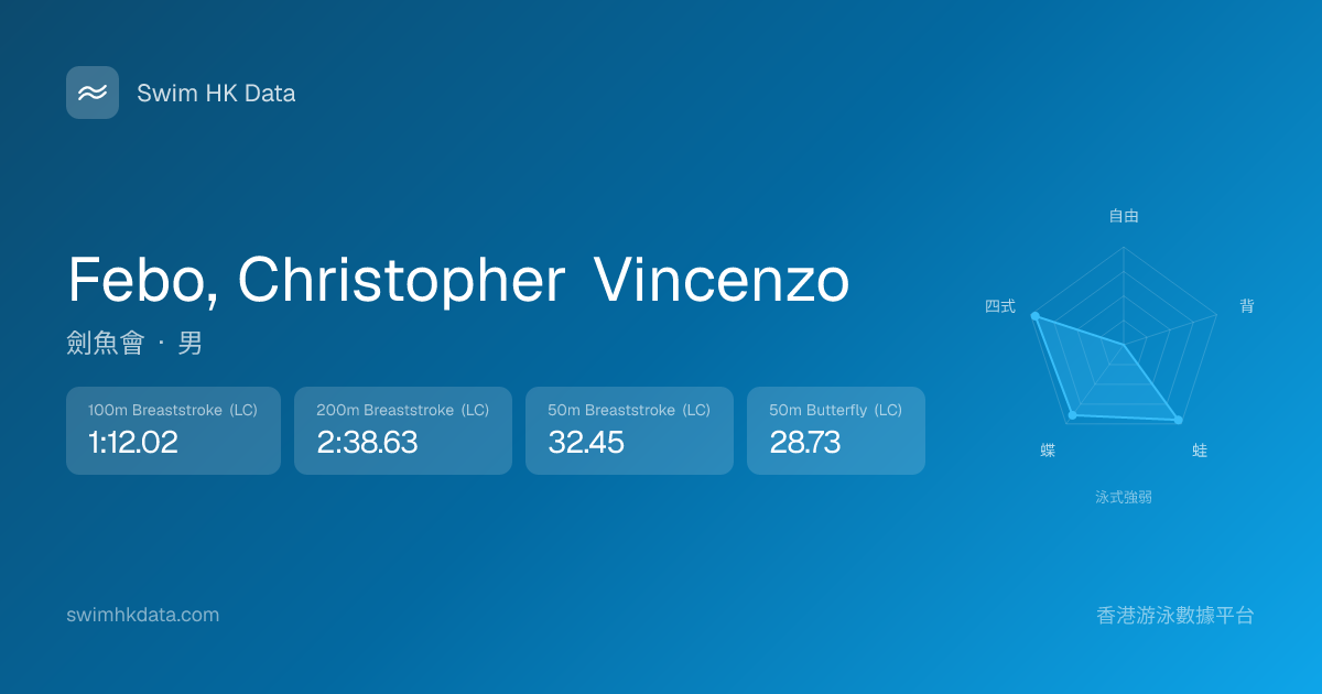 此圖表根據你所有比賽成績計算,顯示你在各泳式的相對強弱,僅供參考。繼續努力,每一次練習都會讓你更快更強!💪