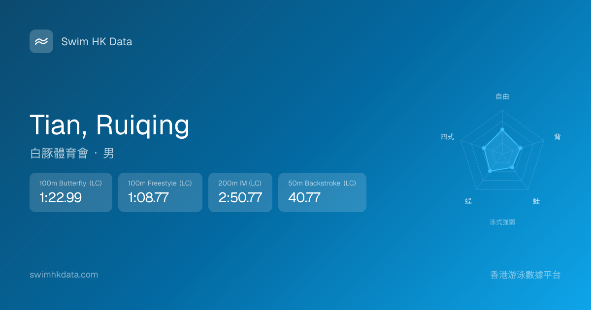 此圖表根據你所有比賽成績計算,顯示你在各泳式的相對強弱,僅供參考。繼續努力,每一次練習都會讓你更快更強!💪