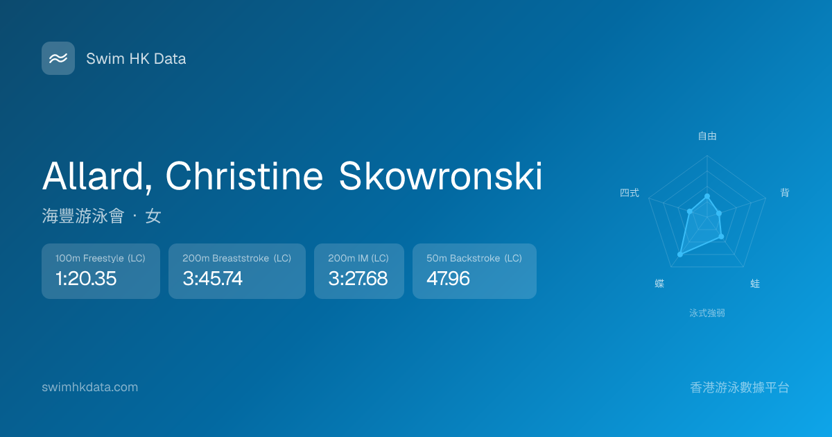 此圖表根據你所有比賽成績計算,顯示你在各泳式的相對強弱,僅供參考。繼續努力,每一次練習都會讓你更快更強!💪