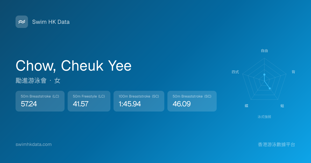 此圖表根據你所有比賽成績計算,顯示你在各泳式的相對強弱,僅供參考。繼續努力,每一次練習都會讓你更快更強!💪