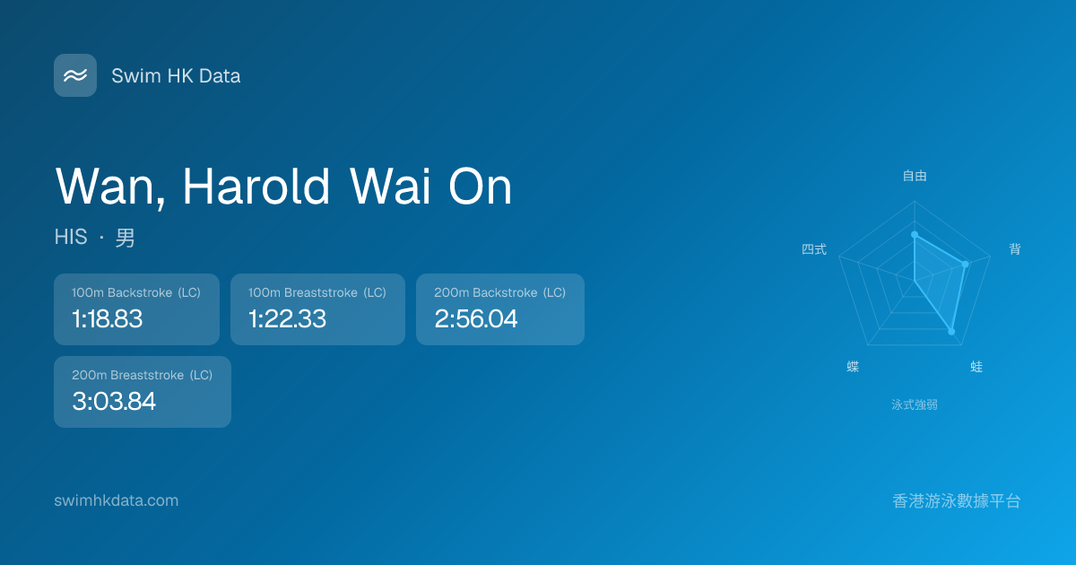 此圖表根據你所有比賽成績計算,顯示你在各泳式的相對強弱,僅供參考。繼續努力,每一次練習都會讓你更快更強!💪