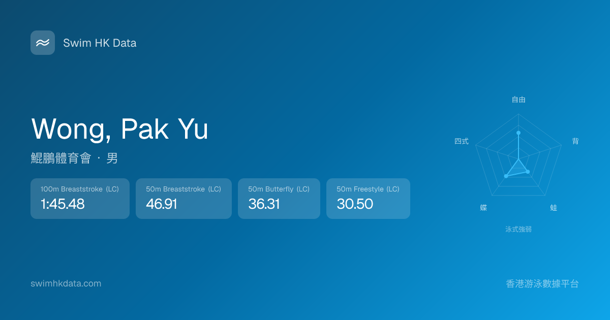 此圖表根據你所有比賽成績計算,顯示你在各泳式的相對強弱,僅供參考。繼續努力,每一次練習都會讓你更快更強!💪