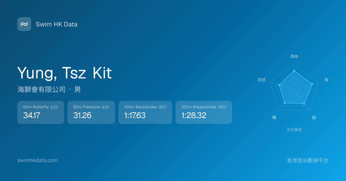 此圖表根據你所有比賽成績計算,顯示你在各泳式的相對強弱,僅供參考。繼續努力,每一次練習都會讓你更快更強!💪