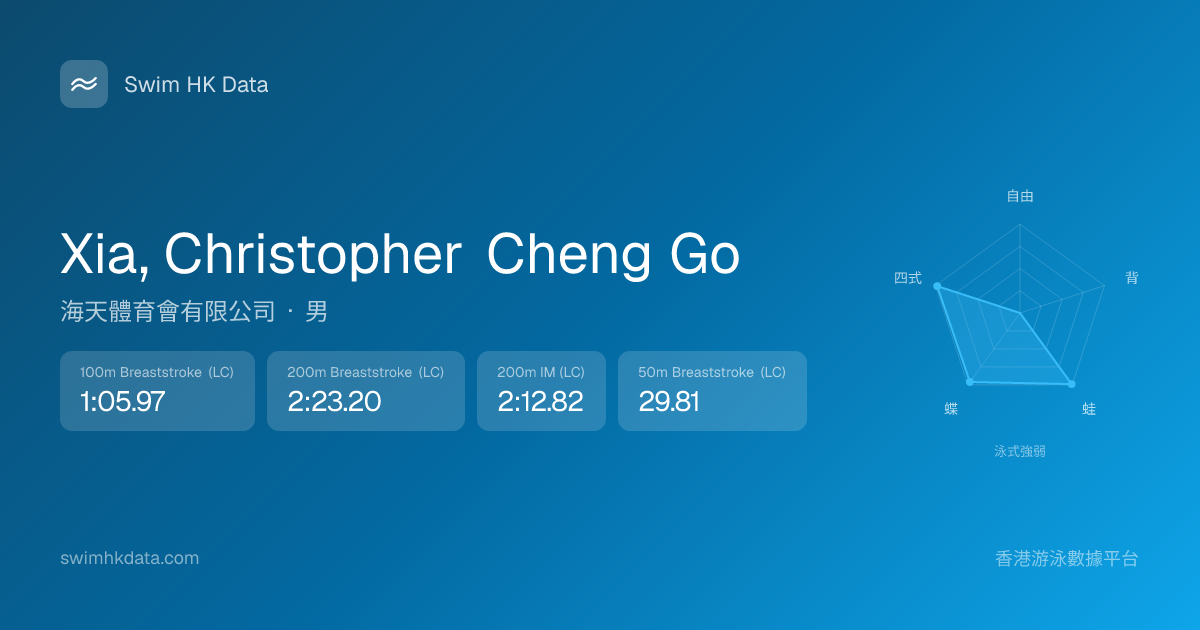 此圖表根據你所有比賽成績計算,顯示你在各泳式的相對強弱,僅供參考。繼續努力,每一次練習都會讓你更快更強!💪