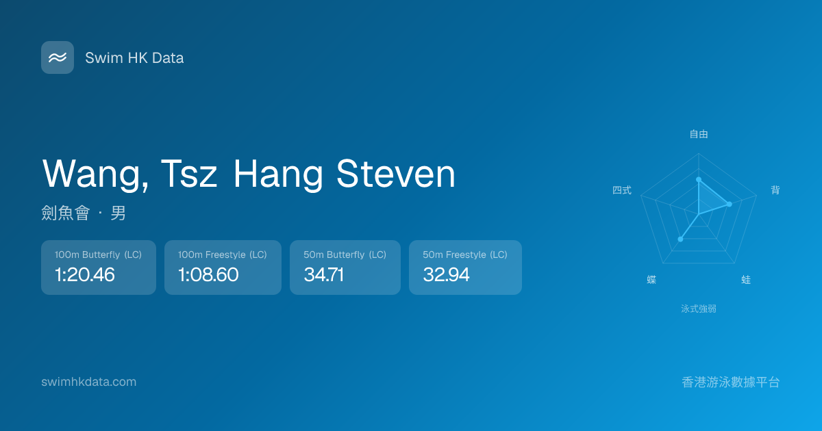 此圖表根據你所有比賽成績計算,顯示你在各泳式的相對強弱,僅供參考。繼續努力,每一次練習都會讓你更快更強!💪