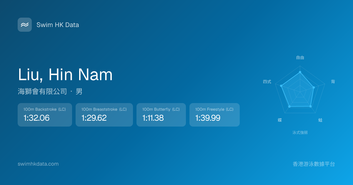 此圖表根據你所有比賽成績計算,顯示你在各泳式的相對強弱,僅供參考。繼續努力,每一次練習都會讓你更快更強!💪