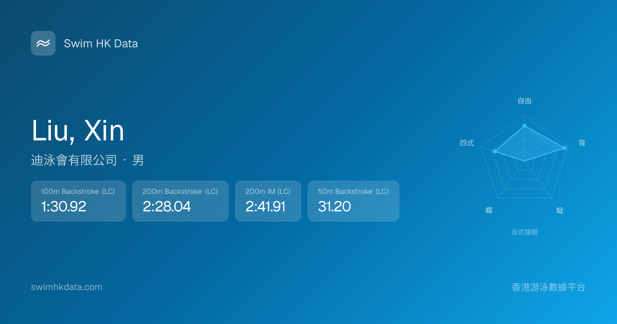 此圖表根據你所有比賽成績計算,顯示你在各泳式的相對強弱,僅供參考。繼續努力,每一次練習都會讓你更快更強!💪