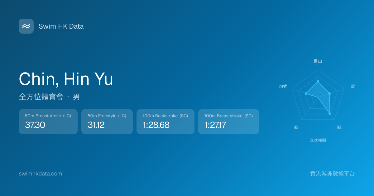 此圖表根據你所有比賽成績計算,顯示你在各泳式的相對強弱,僅供參考。繼續努力,每一次練習都會讓你更快更強!💪