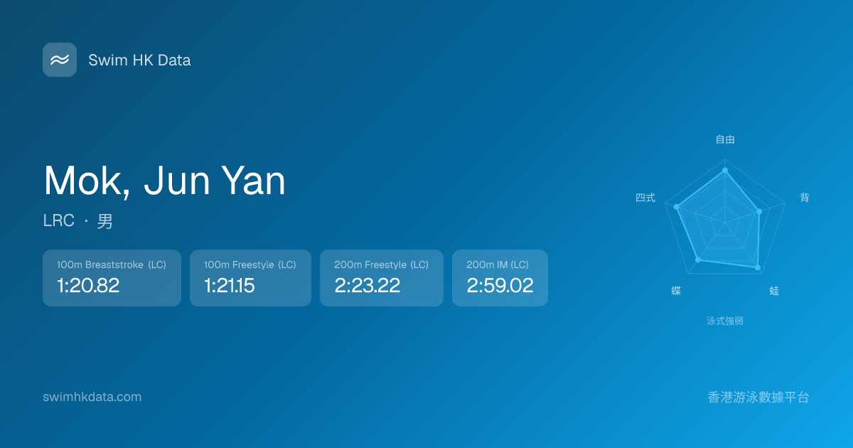 此圖表根據你所有比賽成績計算,顯示你在各泳式的相對強弱,僅供參考。繼續努力,每一次練習都會讓你更快更強!💪