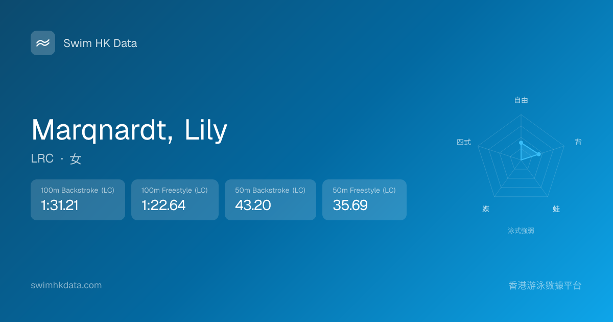 此圖表根據你所有比賽成績計算,顯示你在各泳式的相對強弱,僅供參考。繼續努力,每一次練習都會讓你更快更強!💪