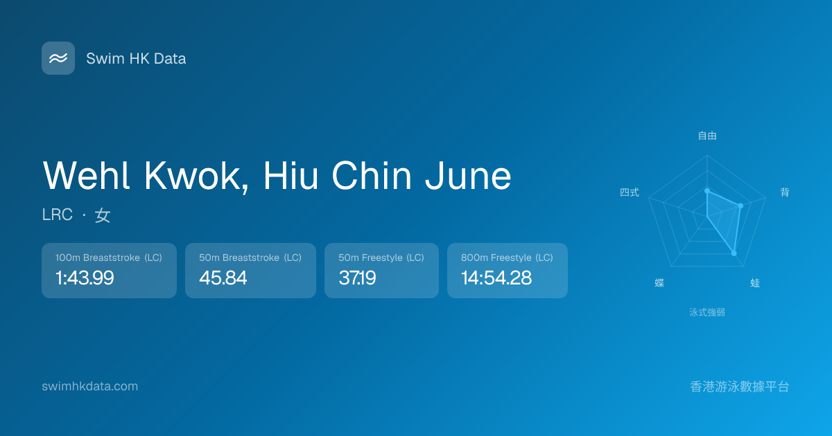 此圖表根據你所有比賽成績計算,顯示你在各泳式的相對強弱,僅供參考。繼續努力,每一次練習都會讓你更快更強!💪
