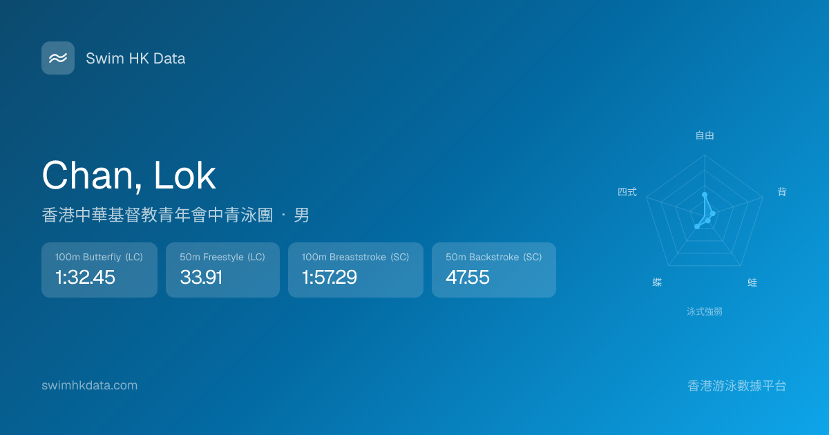 此圖表根據你所有比賽成績計算,顯示你在各泳式的相對強弱,僅供參考。繼續努力,每一次練習都會讓你更快更強!💪