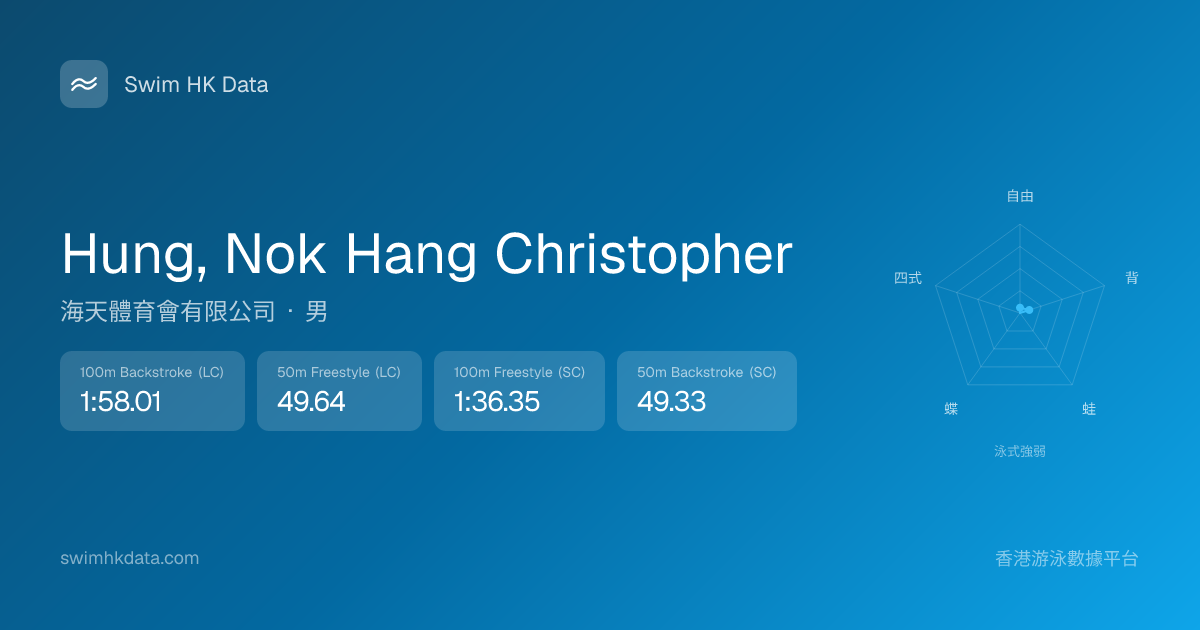 此圖表根據你所有比賽成績計算,顯示你在各泳式的相對強弱,僅供參考。繼續努力,每一次練習都會讓你更快更強!💪