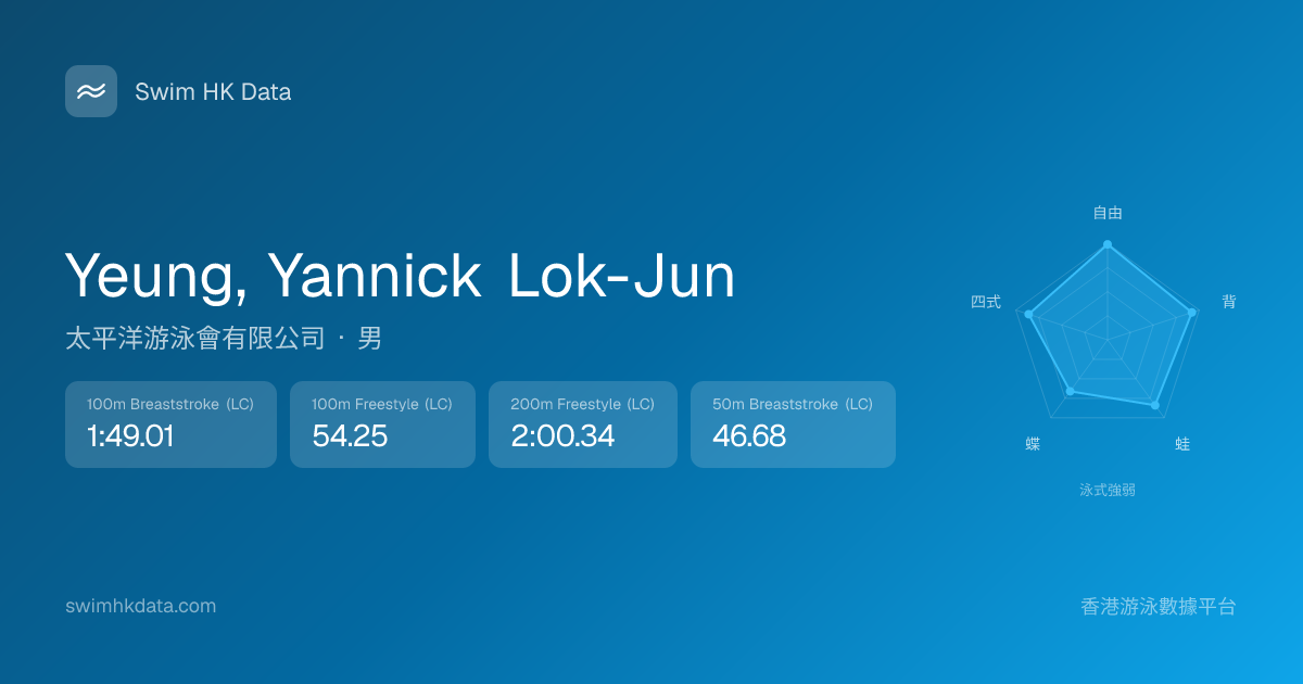 此圖表根據你所有比賽成績計算,顯示你在各泳式的相對強弱,僅供參考。繼續努力,每一次練習都會讓你更快更強!💪