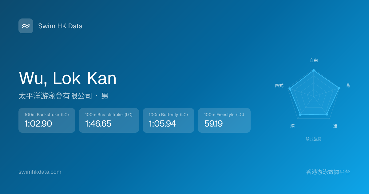 此圖表根據你所有比賽成績計算,顯示你在各泳式的相對強弱,僅供參考。繼續努力,每一次練習都會讓你更快更強!💪