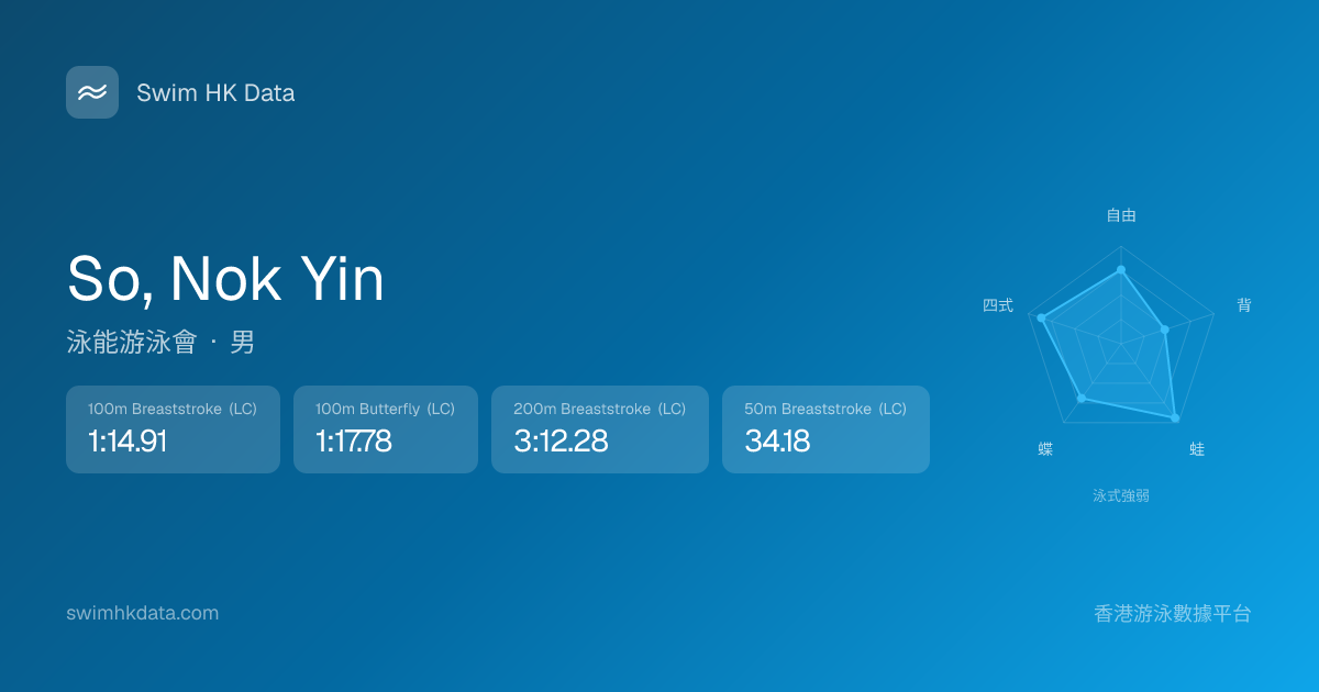 此圖表根據你所有比賽成績計算,顯示你在各泳式的相對強弱,僅供參考。繼續努力,每一次練習都會讓你更快更強!💪