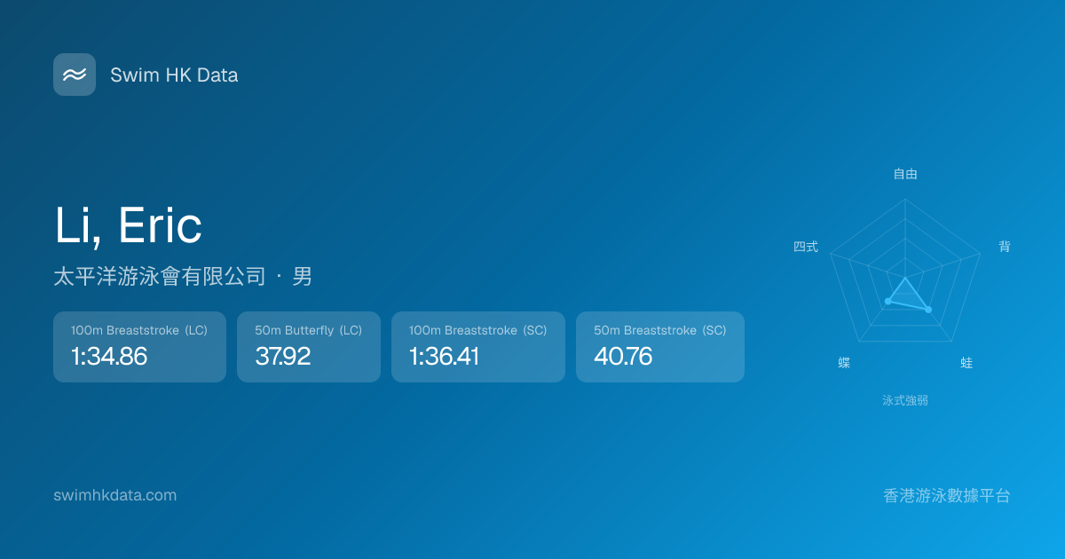 此圖表根據你所有比賽成績計算,顯示你在各泳式的相對強弱,僅供參考。繼續努力,每一次練習都會讓你更快更強!💪