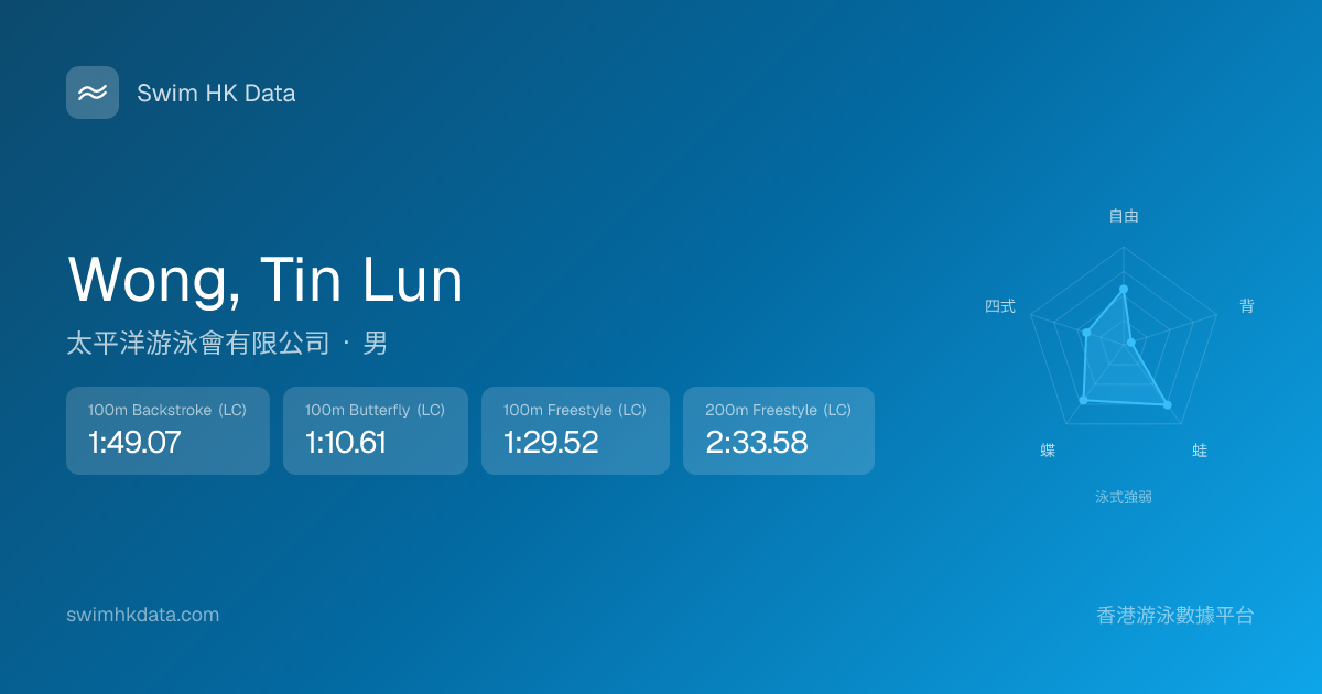 此圖表根據你所有比賽成績計算,顯示你在各泳式的相對強弱,僅供參考。繼續努力,每一次練習都會讓你更快更強!💪