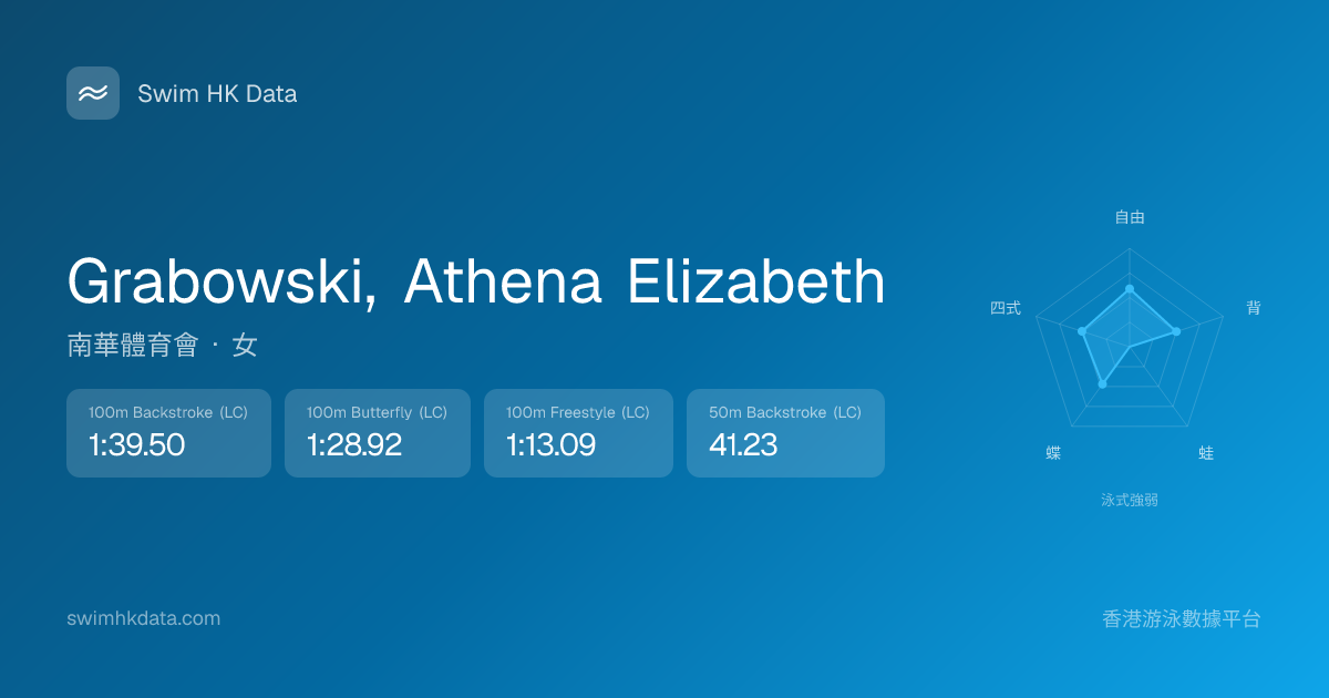 此圖表根據你所有比賽成績計算,顯示你在各泳式的相對強弱,僅供參考。繼續努力,每一次練習都會讓你更快更強!💪