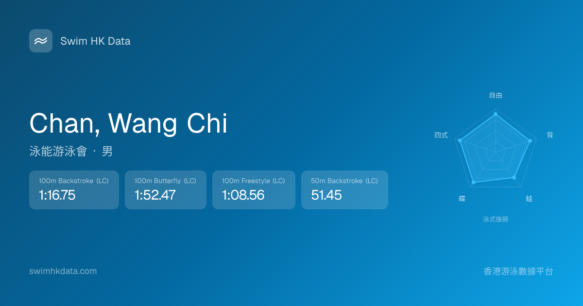 此圖表根據你所有比賽成績計算,顯示你在各泳式的相對強弱,僅供參考。繼續努力,每一次練習都會讓你更快更強!💪
