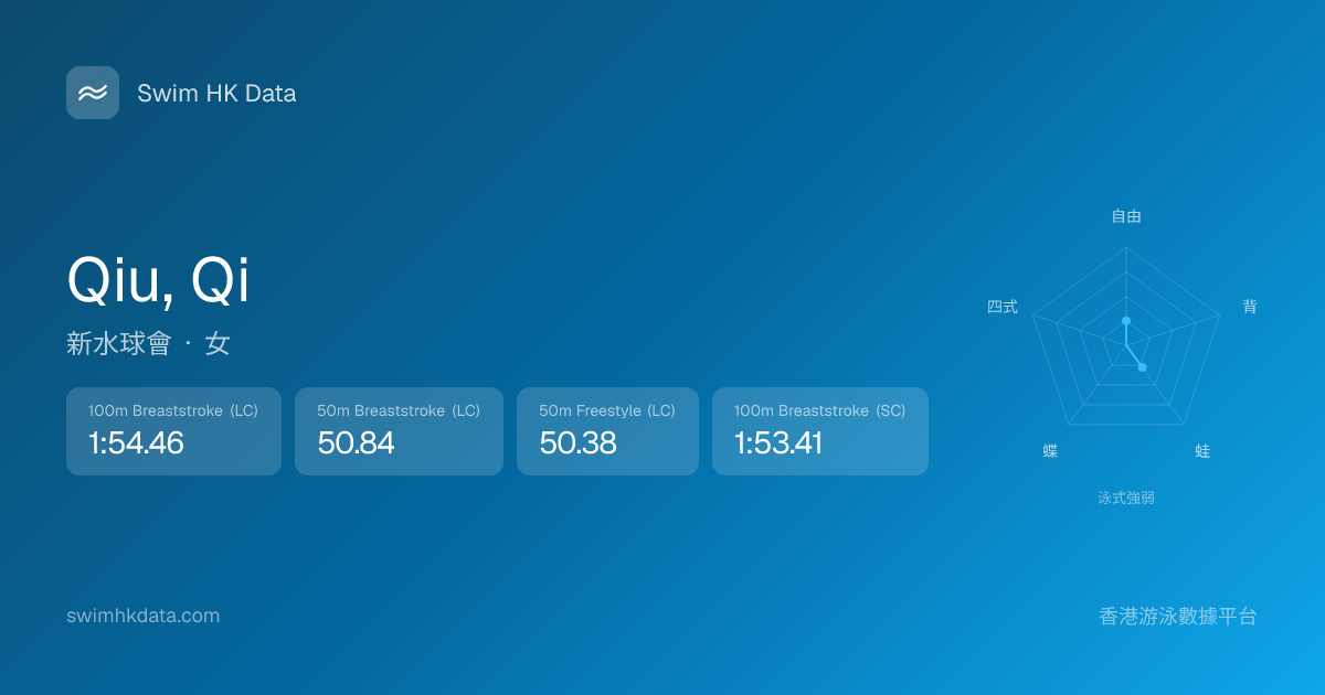 此圖表根據你所有比賽成績計算,顯示你在各泳式的相對強弱,僅供參考。繼續努力,每一次練習都會讓你更快更強!💪