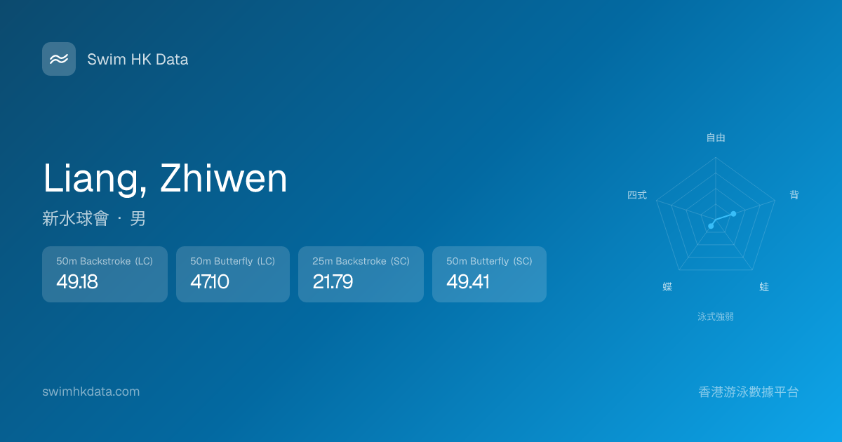 此圖表根據你所有比賽成績計算,顯示你在各泳式的相對強弱,僅供參考。繼續努力,每一次練習都會讓你更快更強!💪