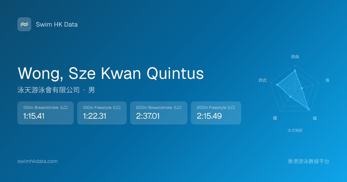 此圖表根據你所有比賽成績計算,顯示你在各泳式的相對強弱,僅供參考。繼續努力,每一次練習都會讓你更快更強!💪