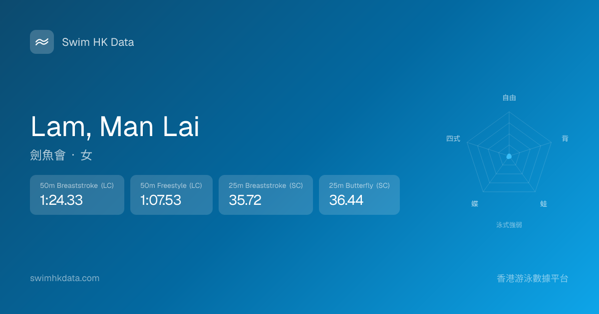 此圖表根據你所有比賽成績計算,顯示你在各泳式的相對強弱,僅供參考。繼續努力,每一次練習都會讓你更快更強!💪