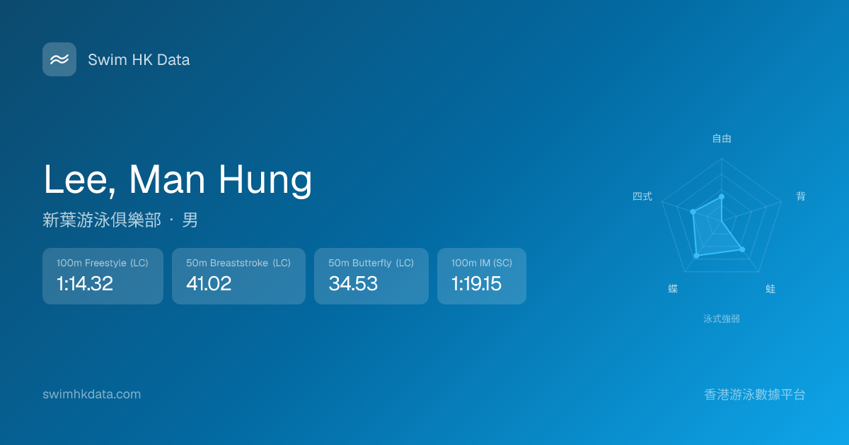 此圖表根據你所有比賽成績計算,顯示你在各泳式的相對強弱,僅供參考。繼續努力,每一次練習都會讓你更快更強!💪