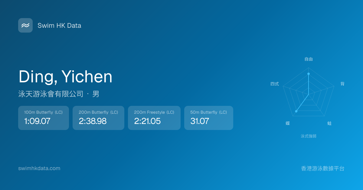 此圖表根據你所有比賽成績計算,顯示你在各泳式的相對強弱,僅供參考。繼續努力,每一次練習都會讓你更快更強!💪