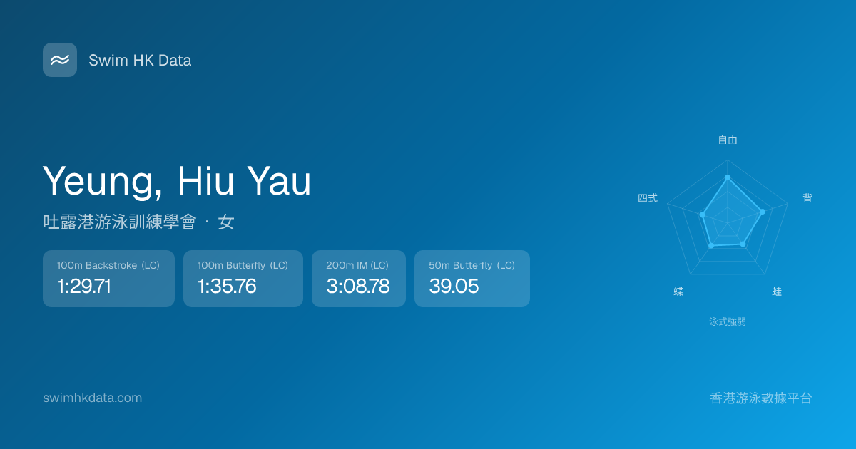 此圖表根據你所有比賽成績計算,顯示你在各泳式的相對強弱,僅供參考。繼續努力,每一次練習都會讓你更快更強!💪
