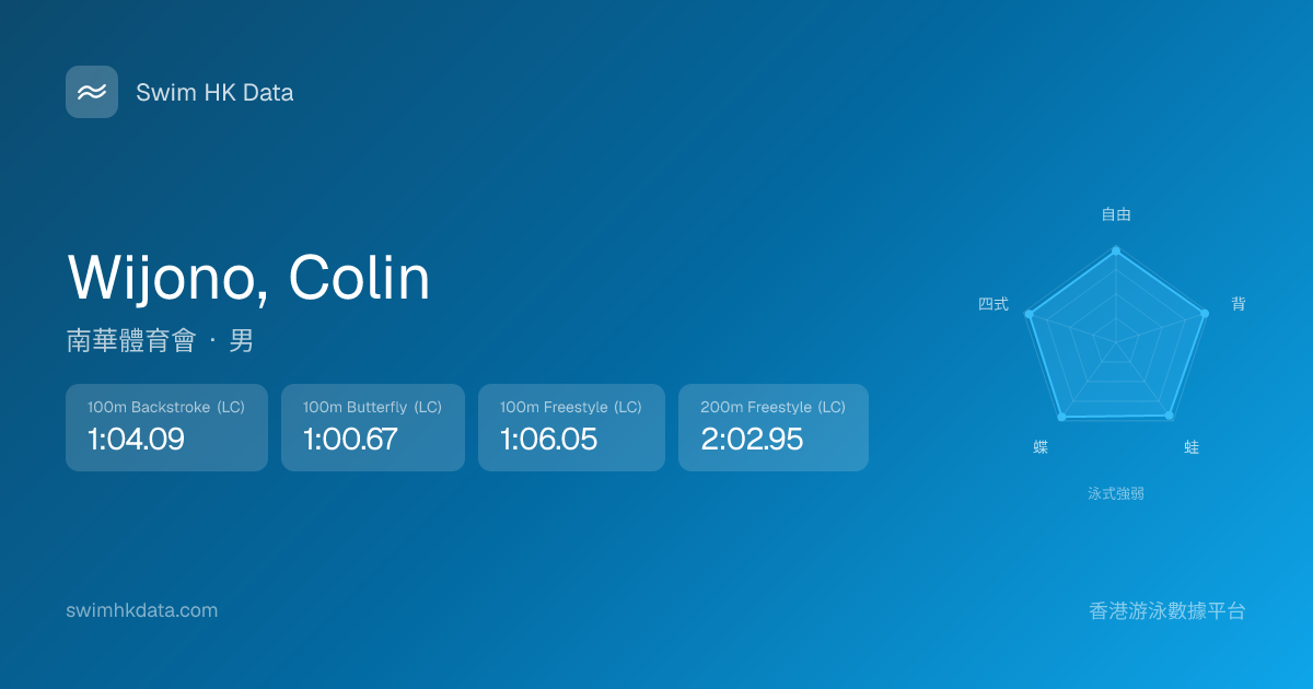 此圖表根據你所有比賽成績計算,顯示你在各泳式的相對強弱,僅供參考。繼續努力,每一次練習都會讓你更快更強!💪