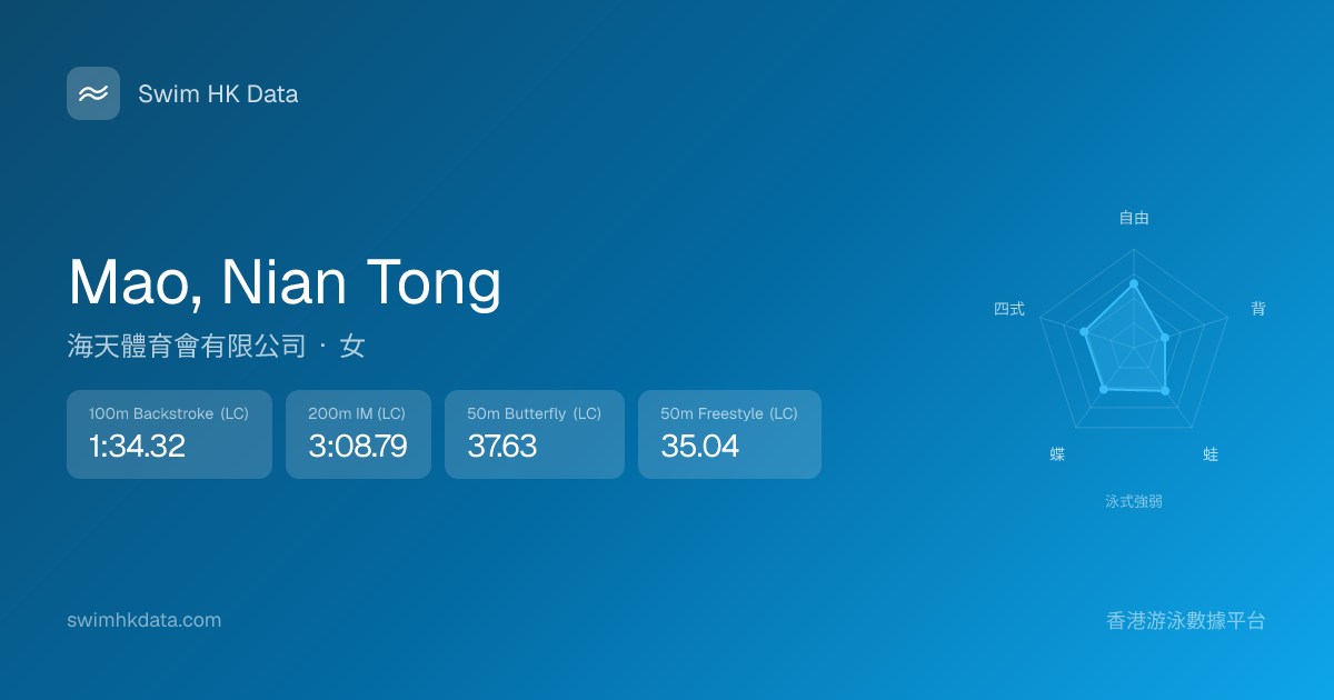 此圖表根據你所有比賽成績計算,顯示你在各泳式的相對強弱,僅供參考。繼續努力,每一次練習都會讓你更快更強!💪