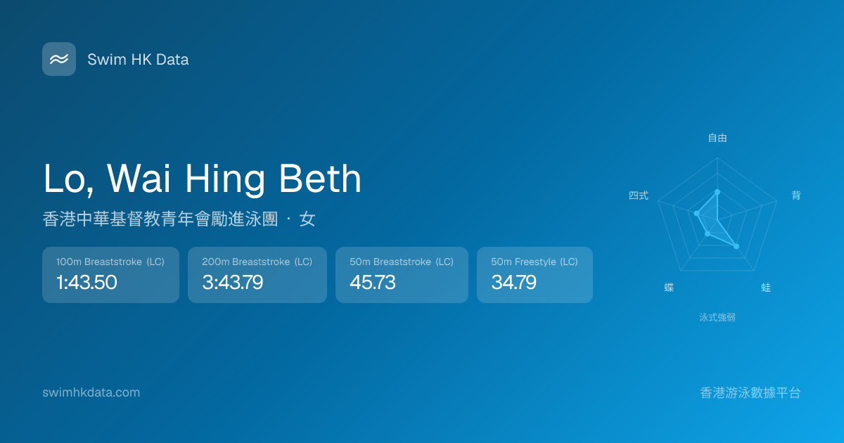 此圖表根據你所有比賽成績計算,顯示你在各泳式的相對強弱,僅供參考。繼續努力,每一次練習都會讓你更快更強!💪
